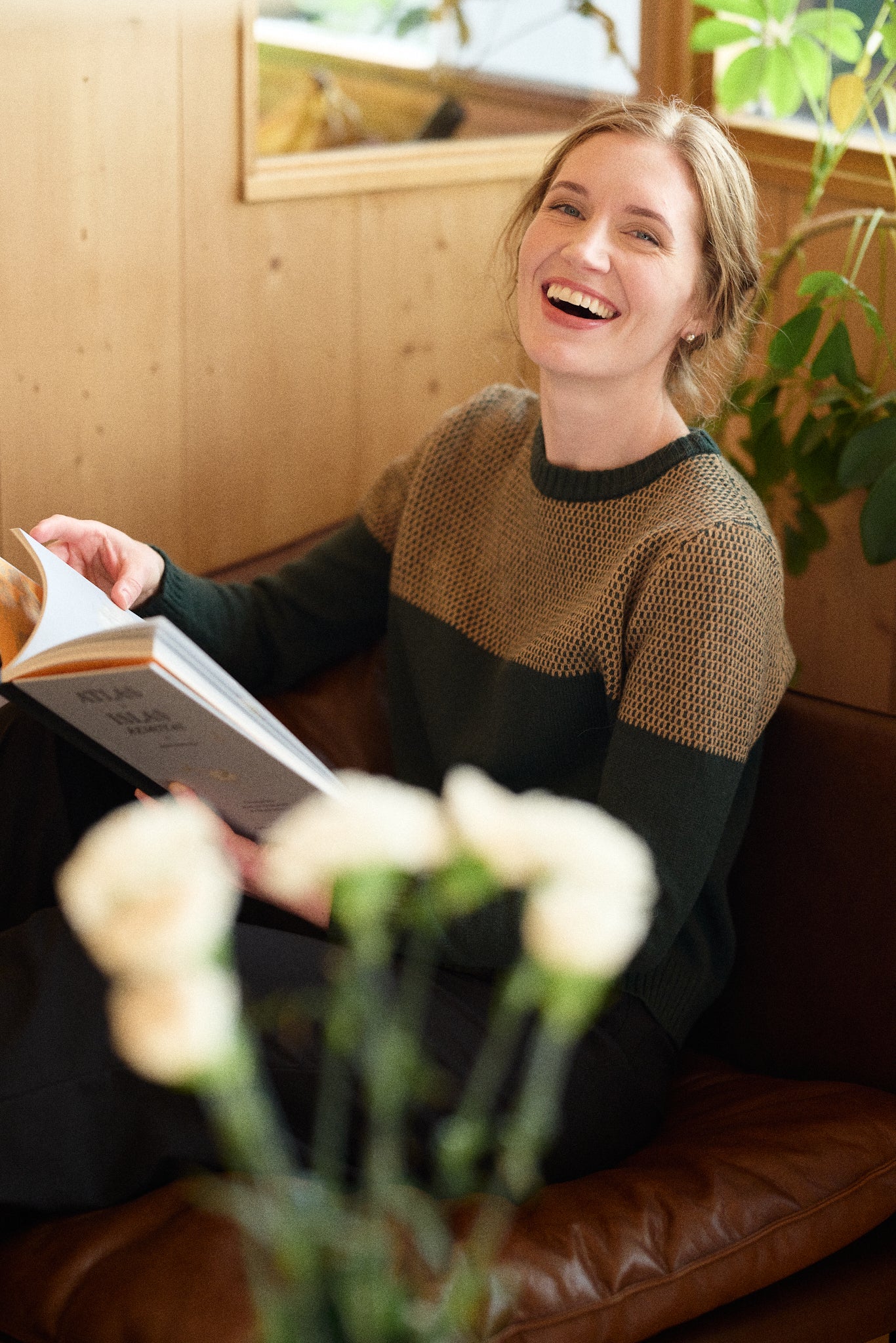 SKOG genser i kasjmirblanding - grønn og sand